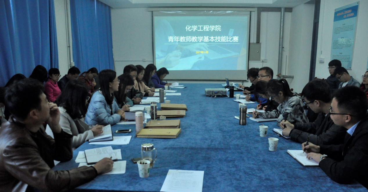 为加强青年教师基本功的训练力度,提高青年教师教学能力和教学水平。11月3日下午,化学工程学院2016年入职的六名青年教师在化工楼会议室参加了教学基本技能比赛。化工学院院长吴明银、副院长于颖敏、机控学院副院长王铭、油气工程学院副院长辛艳萍和化工学院三个专业的系主任参加并担任评委。党总支书记侯曙光主持了本次活动。