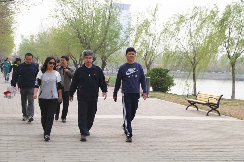 四月十二日下午四点,参加健步走的老师组成的队伍在石油大学荟萃湖北门集合,进行了此次活动的启动仪式,工会主席侯曙光书记发表了热情洋溢的讲话,把大家参赛的热情都调动了起来,在荟萃湖畔,各参赛队伍纷纷喊出自己的参赛口号,对万步达标率100%势在必得。大家按照既定路线环荟萃湖健步走,四月的荟萃湖畔,落英缤纷,垂柳已是枝叶繁茂,路边开满不知名的小花。在这盎然春意里,老师们个个意气风发、精神抖擞,带着快乐的笑容,迈着矫健的步伐,阔步行走在春光明媚的荟萃湖畔,形成了一道靓丽的风景线。