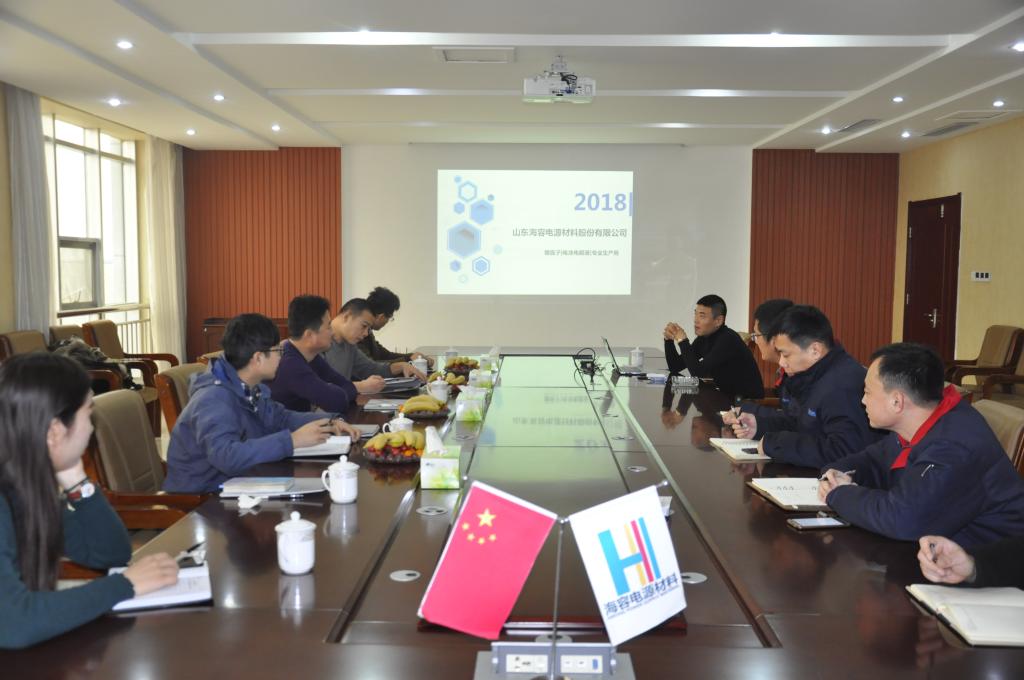 1月11日上午,在党总支书记侯曙光的带领下,永利23411集团任课教师闫兴富、学工办主任张成明、辅导员李文欣以及两位兼职辅导员王林杰、寇明月前往山东沾化赴山东海容电源材料股份有限公司走访观摩。山东海容电源材料股份有限公司董事长王吉峰、副总经理任海以及各职能部门总监予以接待并展开了座谈会。