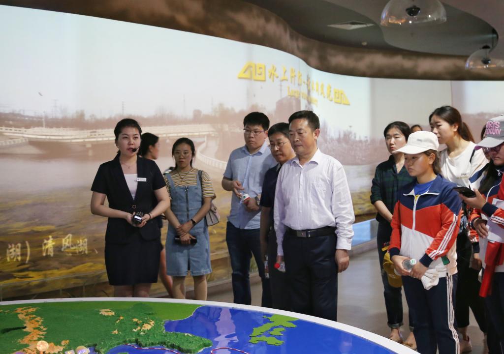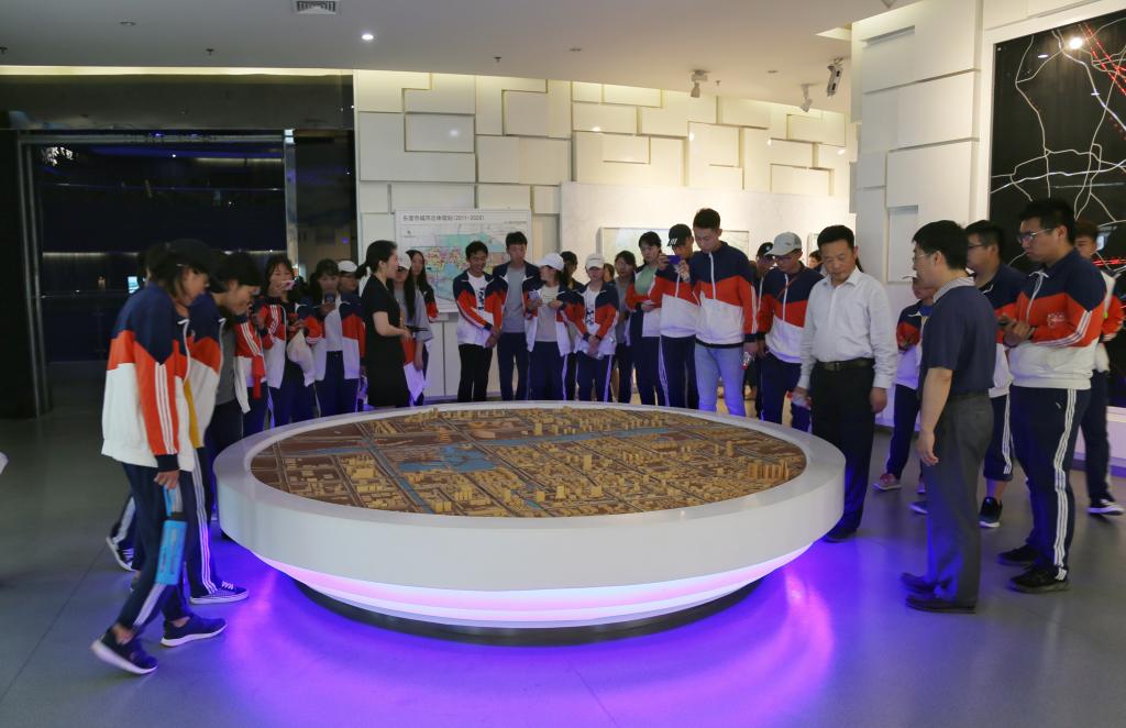 东营市城市规划展览馆作为东营文化名片,共分为四层,包括了九大主题展厅,总建筑约16000平方米。展馆以“黄蓝交汇,生态宜居”为主题,以生态文明为主线,分为“城市概况、城市起源、建设成就、城市规划、城市未来”五个篇章,运用声、光、电等科技手段,集中展示了东营城市建设的发展历程及未来发展远景。通过讲解员声情并茂的讲解,老师和同学们在了解了东营的发展历史、当前城市规划建设、未来发展规划的同时,也从另一个角度俯瞰到美丽壮观的东营。参观馆场完毕后返程的路上,老师和同学们一起来到了明月湖国家城市湿地公园一览风光,为本次参观学习画上了圆满的句号。