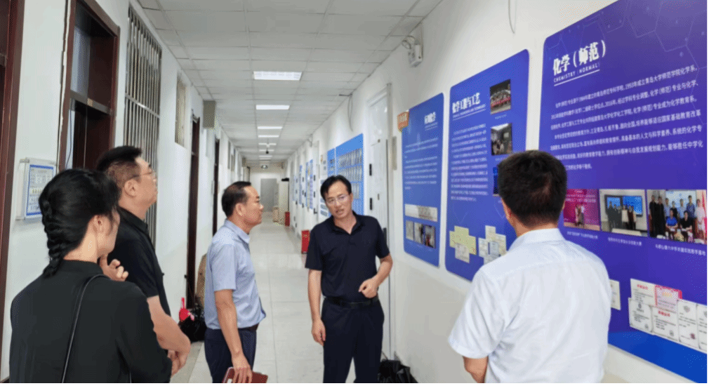 在青岛大学化学化工学院的座谈交流中,青岛大学化学化工学院院长王国明就专业建设、科研方向及师资队伍建设介绍了基本情况并传授了切实可行的经验;副院长毕赛介绍了研究生教育与培养及科技创新的经验。