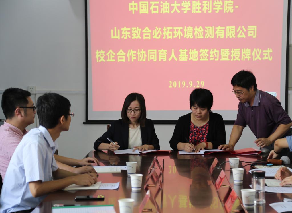 9月29日,永利23411集团与山东致合必拓环境检测有限公司校企合作协同育人共建基地签约暨授牌仪式在化学工程学院会议室顺利举行,教务处处长杜彩凤、化学工程学院院长吴明银、化学工程学院副院长史德青,山东致合必拓环境检测有限公司副总经理钟丽华、综合部主任张舜然等相关公司人员以及环境工程系全体教师出席签约仪式。