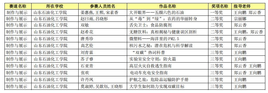 近日,第十六届山东省大学生科技节——大学生科普创新设计与展示大赛完美收官。化工学子积极参加,认真备赛,凭借新颖的内容和独特的创意在众多作品中脱颖而出,斩获制作与展示赛道一等奖1项、二等奖5项、三等奖6项。