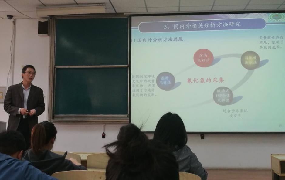 10月24日下午两点,以科学技术处主办、化学工程学院承办的名为“离子色谱法测定固定污染源废气中氟化氢标准制修订”的学术讲座在第四教学楼4209举办。