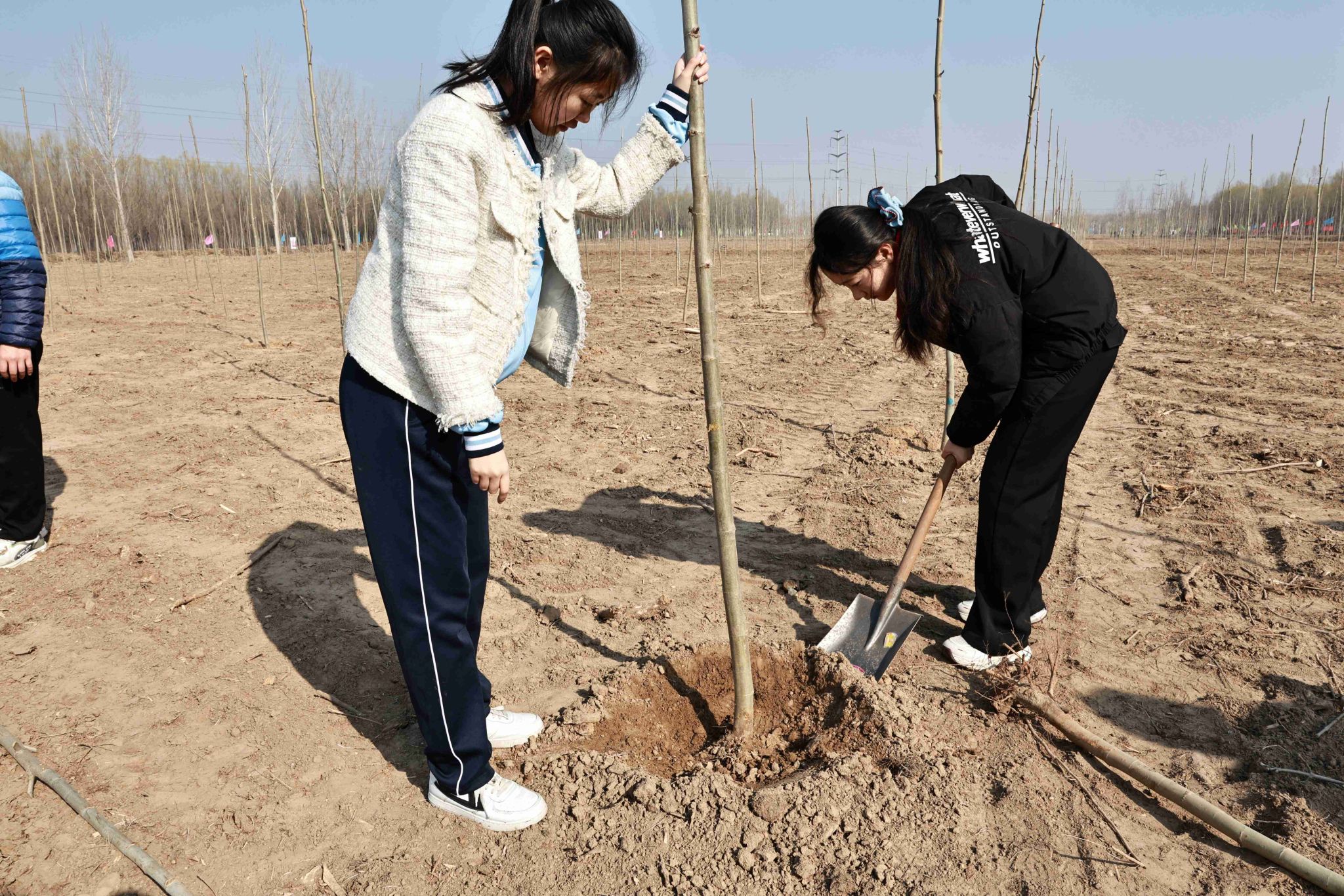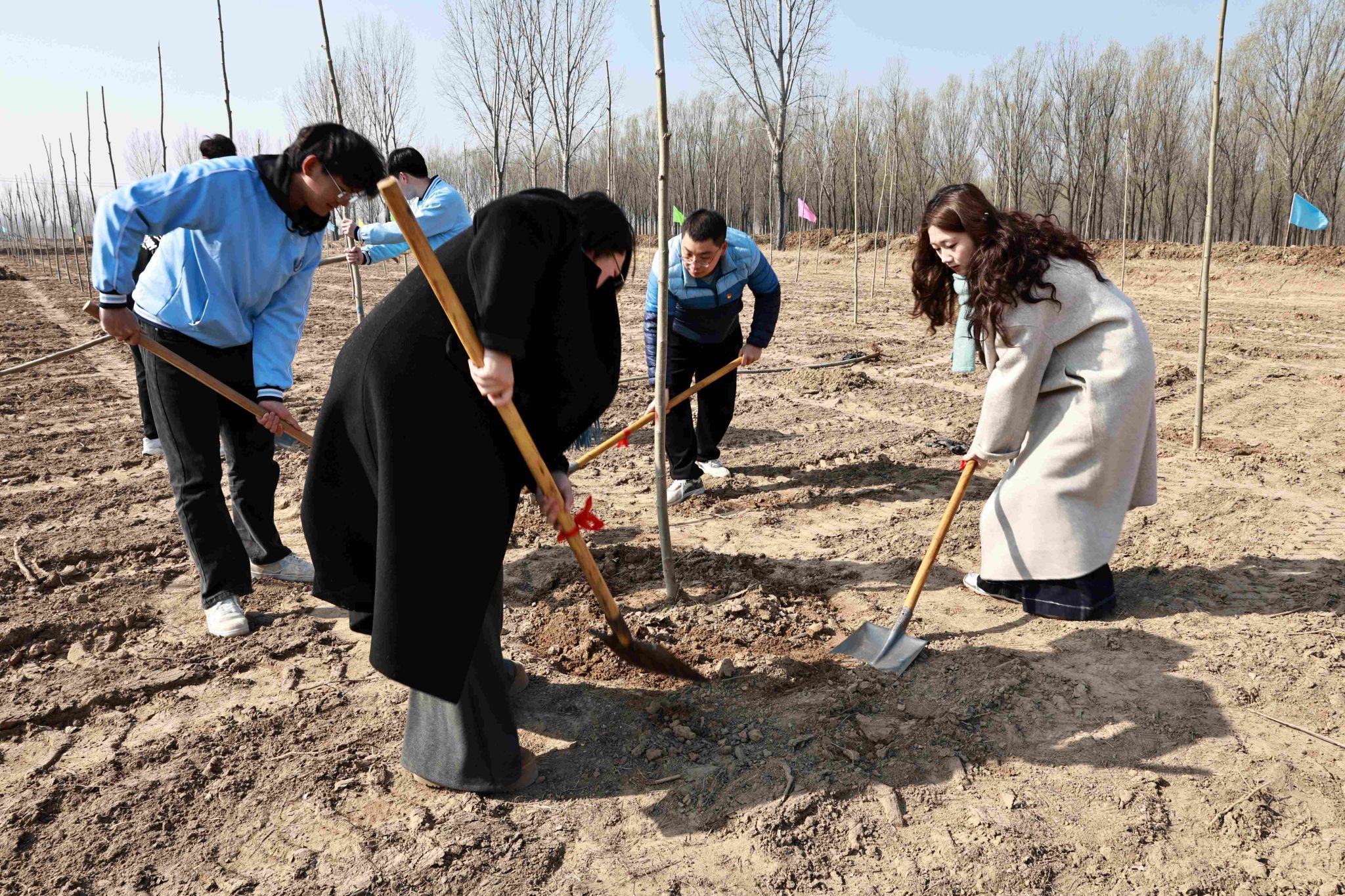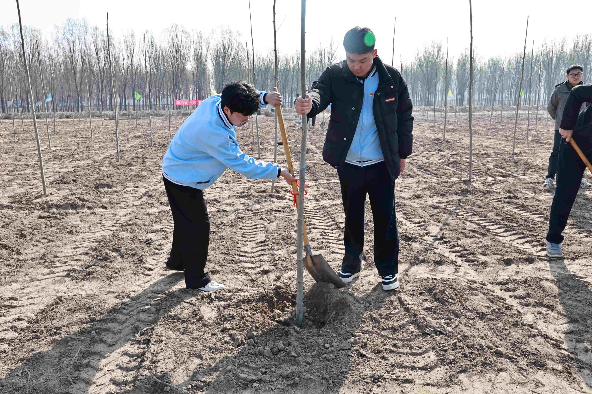 活动现场,学院师生热情高涨,大家三五成组,挥锹铲土、扶苗围堰、提水浇灌,干劲十足。经过一上午的辛勤劳作,一株株新栽种的树苗在黄河岸边“安家落户”,错落有致、迎风挺立,为初春增添了勃勃生机。
