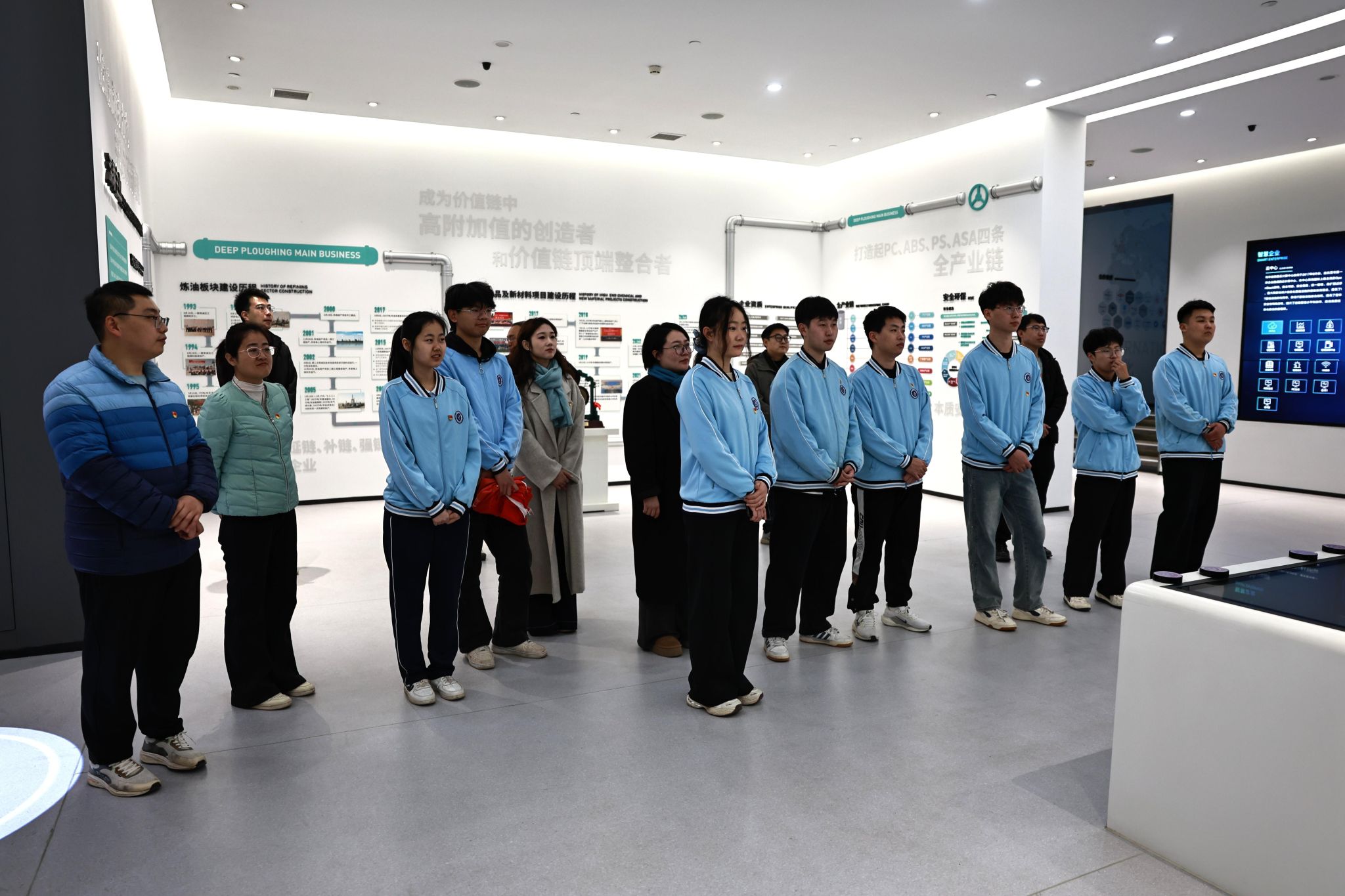 植树活动结束后,大家前往山东利华益集团股份有限公司参观学习。在讲解员的引导下,同学们详细了解了利华益集团的发展历程、产业布局和企业愿景,深入学习了集团通过“深耕主业、多元赋能”实现跨越式发展的成功实践。