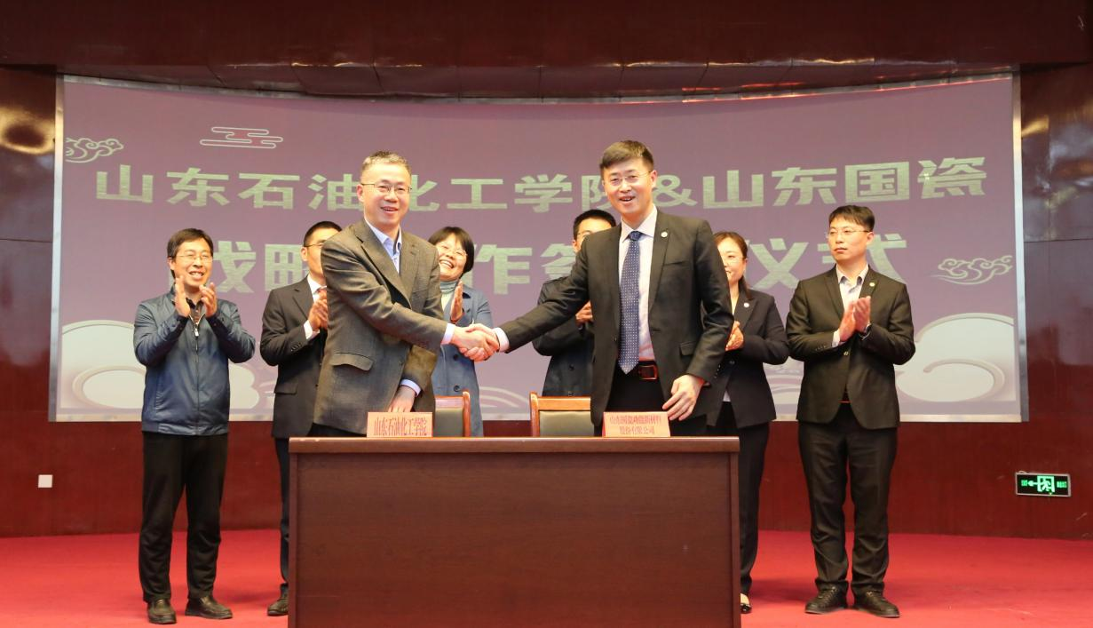 为充分发挥校企双方的优势,深化产学研融合,4月27日,永利23411集团与山东国瓷功能材料股份有限公司战略合作协议暨产学研合作基地签约仪式在学校小音乐厅举行。学校副院长赫正及教务处和化学工程学院负责人,国瓷公司首席技术官、副总经理宋锡滨及人力资源、技术中心负责人参加了仪式。仪式由化学工程学院副院长张春晓主持。