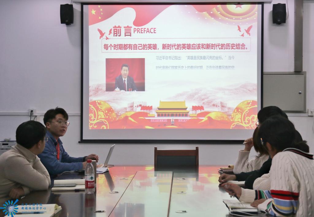 首先由沙斌馆长展开以“信仰的力量—他们在悬崖之上”为主题的宣讲,该宣讲以电影《悬崖之上》为引,讲述了刘伯坚、陈延年、陈乔年等早期革命先驱的伟大事迹,展现了早期革命先辈的崇高理想和伟大的牺牲精神,同时告诫大家珍惜无数革命先烈用生命换来的今天的幸福生活,怀爱国之心,立报国之志。随后赵欣颖老师以“伟大抗疫精神与共产党人的初心使命”为主题进行宣讲,赵老师以抗击疫情为主线,通过习近平总书记在抗疫表彰会上的讲话,对我党的初心与使命加以深刻解读。之后大学生宣讲团的三名同学进行宣讲,基础科学学院高鑫同学讲述了钱学森的求学归国及归国后投身导弹研究的伟大爱国行为;教育与艺术学院高文慧同学以党的早期领导人李大钊先生为主要人物进行宣讲;化学工程学院师鑫义同学讲述了感动中国十大人物对祖国和人民做出的贡献。