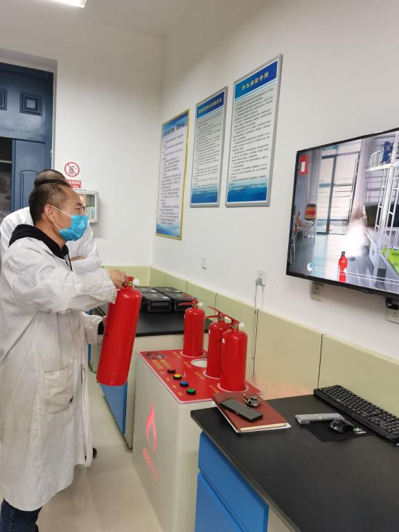此次应急演练由化工安全实训室负责人刘香芝进行讲解和演示,讲解的主要内容有触电伤害、火灾事故、化学药品腐蚀处理等。同时,刘香芝还用道具假人为大家演示了伤口包扎、人工呼吸、胸部急救按压等救援措施。老师们认真听讲,之后进行了灭火器的操作练习和触电急救、火灾现场自救等演练。