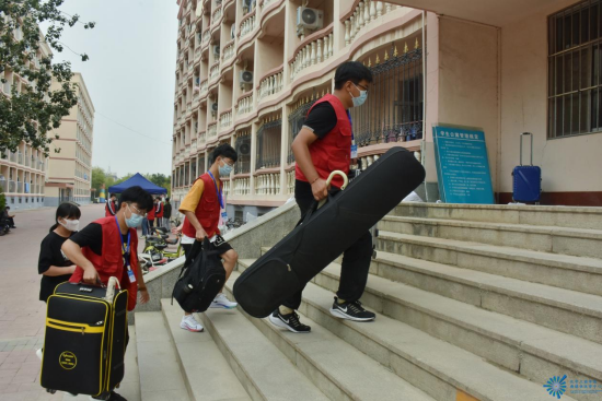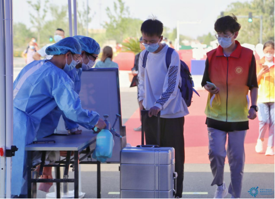 从早上7点开始,新生按学校疫情防控的要求陆续从北大门进入。志愿者迎上前去接过新生手中行李,并引导新生进校,严格落实防疫要求,坚决把好校园疫情防控第一关。
