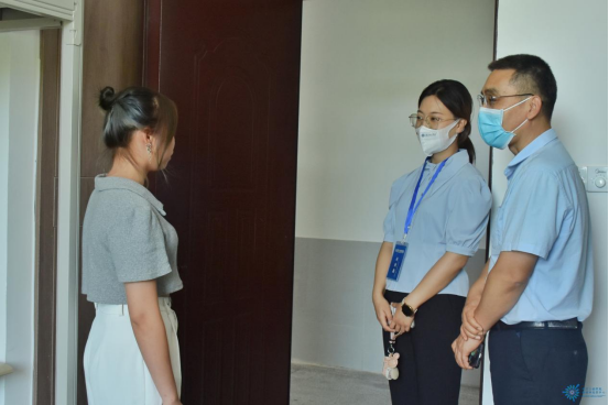 迎新期间,党总支书记祝永胜带领辅导员和新生助理前往新生宿舍慰问新生,详细了解他们的返校和适应情况,嘱咐同学们注意个人安全,保持良好的卫生和健康状态,尽快适应新的学习和生活环境。