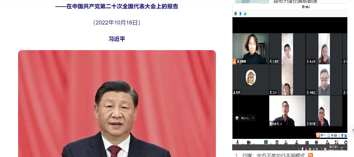 10月31日下午,化学工程党支部书记姚媛媛通过线上会议领学了党的二十大报告有关重要论述。全体党员围绕学习内容,结合自身的思想和工作实际依次作讨论发言。党总支书记祝永胜认为,作为高等教育战线的一名党员,我们坚决拥护党中央做出的一切决策部署。我们将在党的二十大精神的指引下,坚定不移地用党的科学理论武装头脑,坚守党的初心使命,努力培养更多担当民族复兴大任的时代新人。
