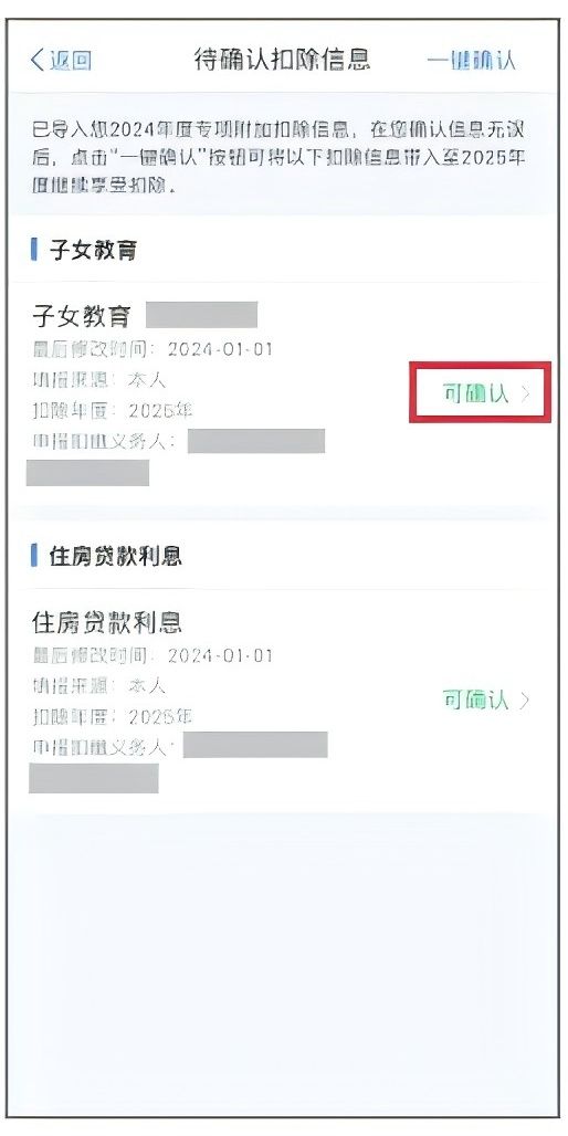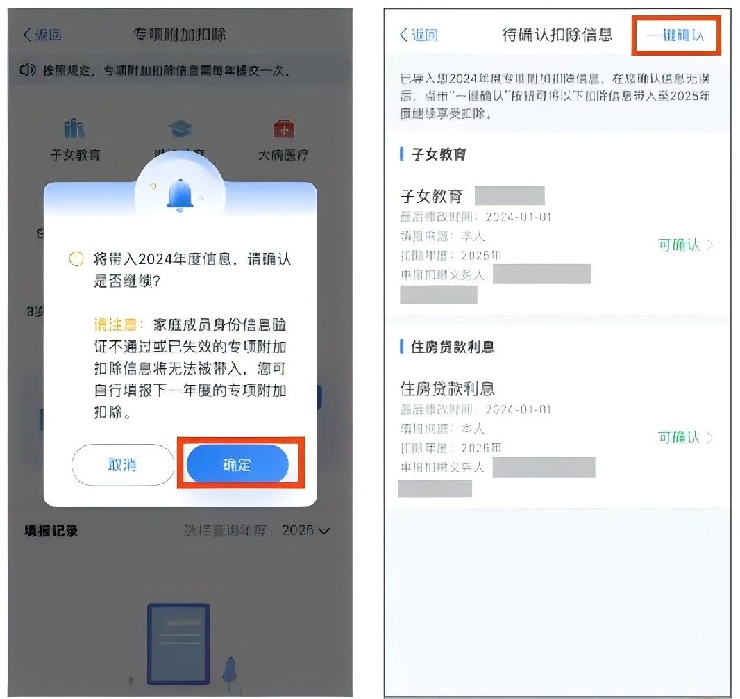情形一:2025年专项附加扣除信息无变化,只需在2024年基础上确认即可。