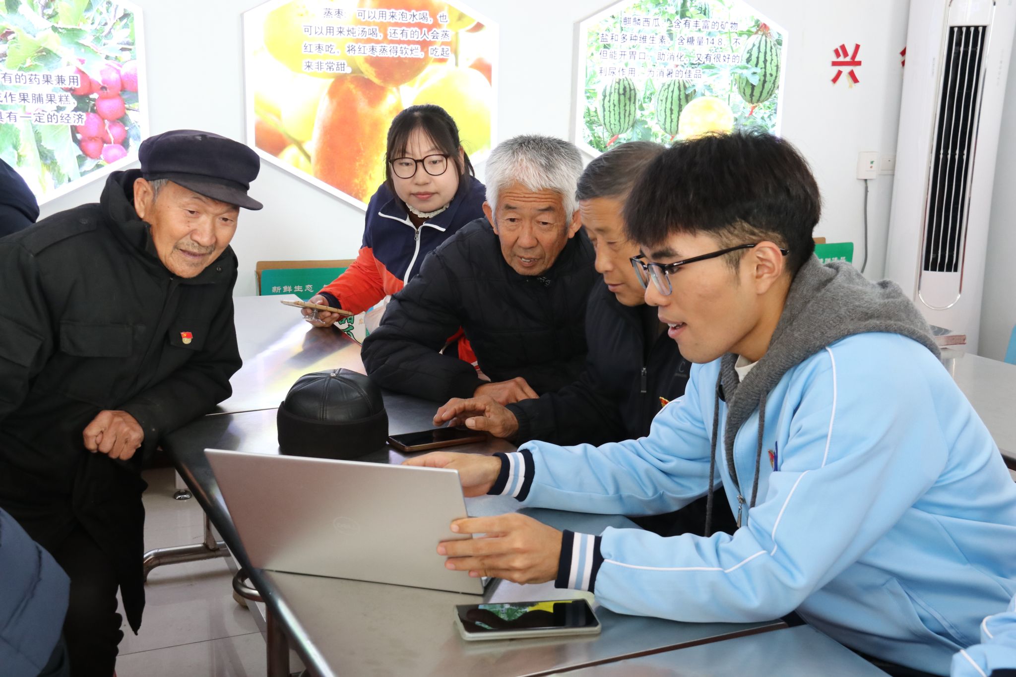在北宋镇五庄村党群服务中心,学生党员们胸带闪耀的党徽,怀着无比崇敬的心情,参加了庄严的升旗仪式。升旗仪式结束后,全体党员认真学习了《中共中央国务院关于进一步深化农村改革 扎实推进乡村全面振兴的意见》,并围绕“如何发挥高校职能,助力乡村振兴”这一主题,两党支部进行了深入的交流。随后,学院学生以DeepSeek本地化部署为契机,向农村群众详细介绍了人工智能技术在农业生产生活中的应用,在现场指导群众安装软件,向他们讲解如何借助人工智能技术解决当前作物种植过程中遇到的问题。