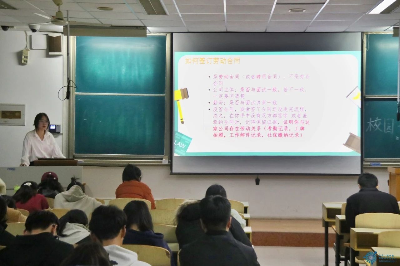 活动中针对大学生就业工作方面,陈天雨同学通过名词解读以及相关法律视频,让同学们更详细地了解劳动合同和三方协议等重要名词含义,并向同学们介绍了就业安全的问题和防诈骗的方法。陈同学呼吁同学们加强对个人信息的保护,提高防范意识。
