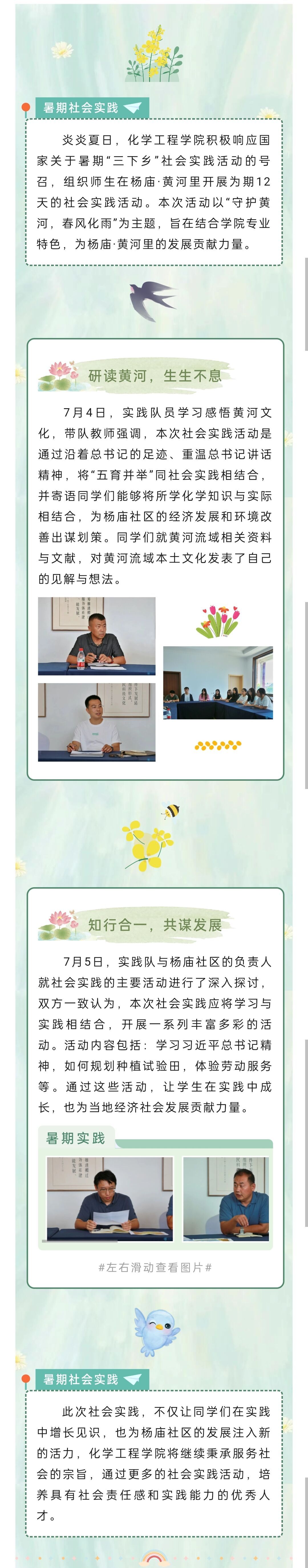 上一条:暑期社会实践(二) | 守护黄河,春风化雨 下一条:沿着总书记的足迹 | 化学工程学院开展暑期“三下乡”社会实践活动