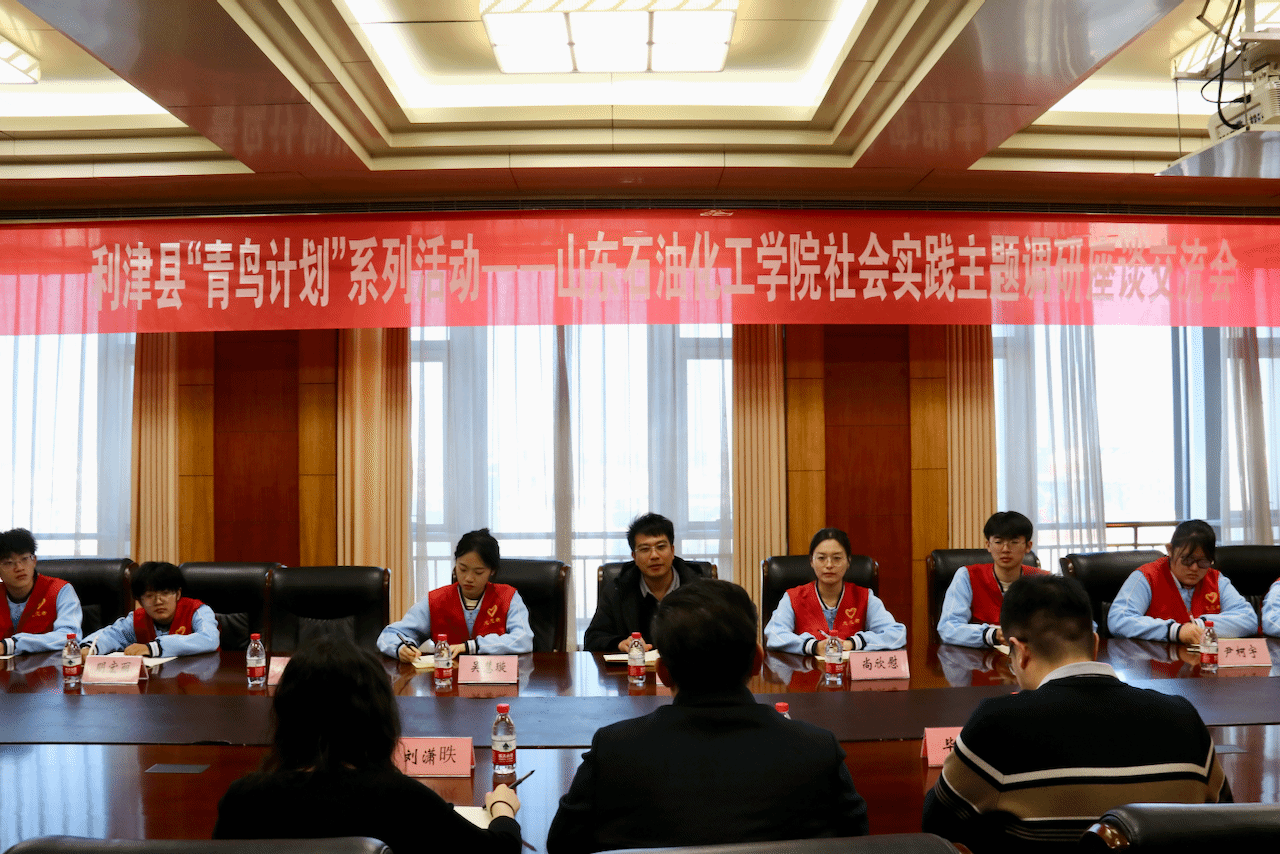 在共青团利津县委开展座谈会,学院学生向共青团利津县委副书记丁杨汇报了寒假大学生“返家乡”社会实践活动取得的成果。丁书记表示,高校和高校大学生是服务当地经济发展的重要力量,希望同学们以此为契机,努力学习科学文化知识,毕业后积极投身到家乡建设。最后,丁书记为学生颁发了“优秀实践调研团”荣誉证书。