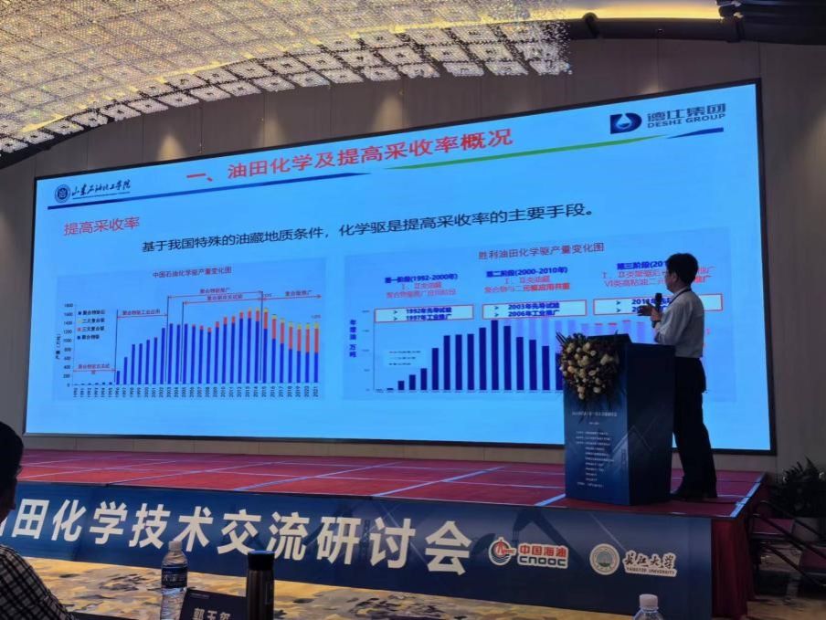 会上,来自中石油、中石化、中海油、延长油田及油服企业领导专家介绍了油田化学品和化学驱提高采收率领域最新技术进展及技术需求,中国石油大学(华东)、长江大学等高校的专家学者介绍了最新的研究成果及其应用现状。