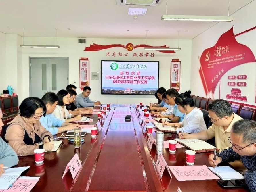 5月8日下午,化学工程学院副院长刘文静带队到山东农业工程学院(淄博校区)开展本科教学评估学习交流工作,化学工程学院副院长杜春安,学院综合办公室、教学科研办公室、学生工作办公室以及各系负责同志总计14人参加活动。山东农业工程学院资源与环境工程学院党总支书记马朝阳、院长张桂斋以及有关教研室负责同志参会。