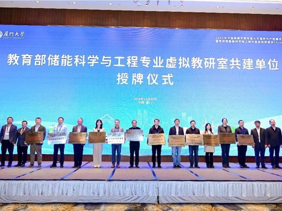 11月30日至12月1日,2024年全国储能学科专业人才培养与产教融合研讨会暨教育部储能科学与工程专业虚拟教研室2024年年会在厦门召开,永利23411集团徐鸣教授和孔凡厚老师受邀参会,会上永利23411集团作为共建单位正式获批并加入教育部储能科学与工程专业虚拟教研室。会议期间,永利23411集团教师与国内高校专家及企事业代表就储能人才培养、专业建设、科技攻关、平台共建以及产教融合等方面进行了深入地探讨与交流。